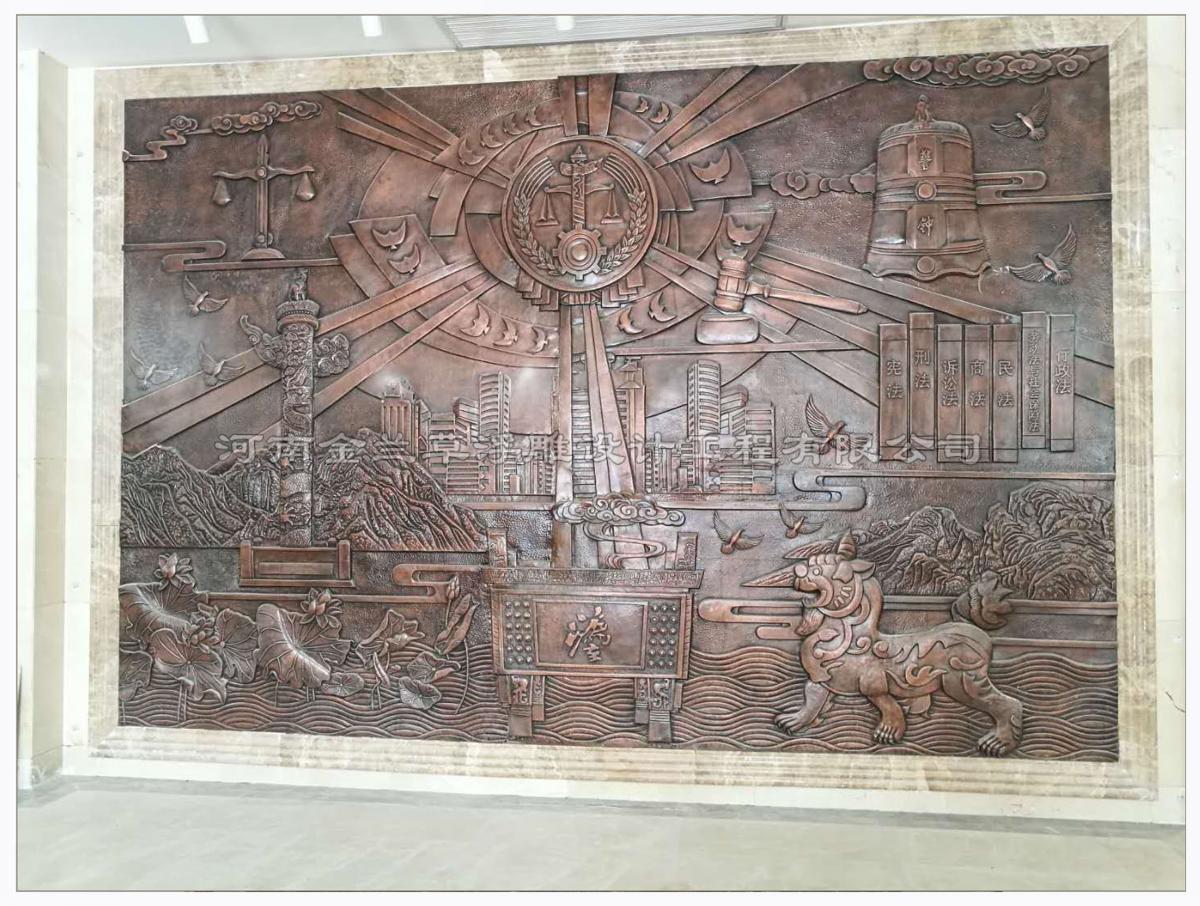法院清廉浮雕墻因為裝飾需求,大堂浮雕墻在法院清廉浮雕墻的裝飾中運用較多,浮雕質感古樸典雅,大方美觀,